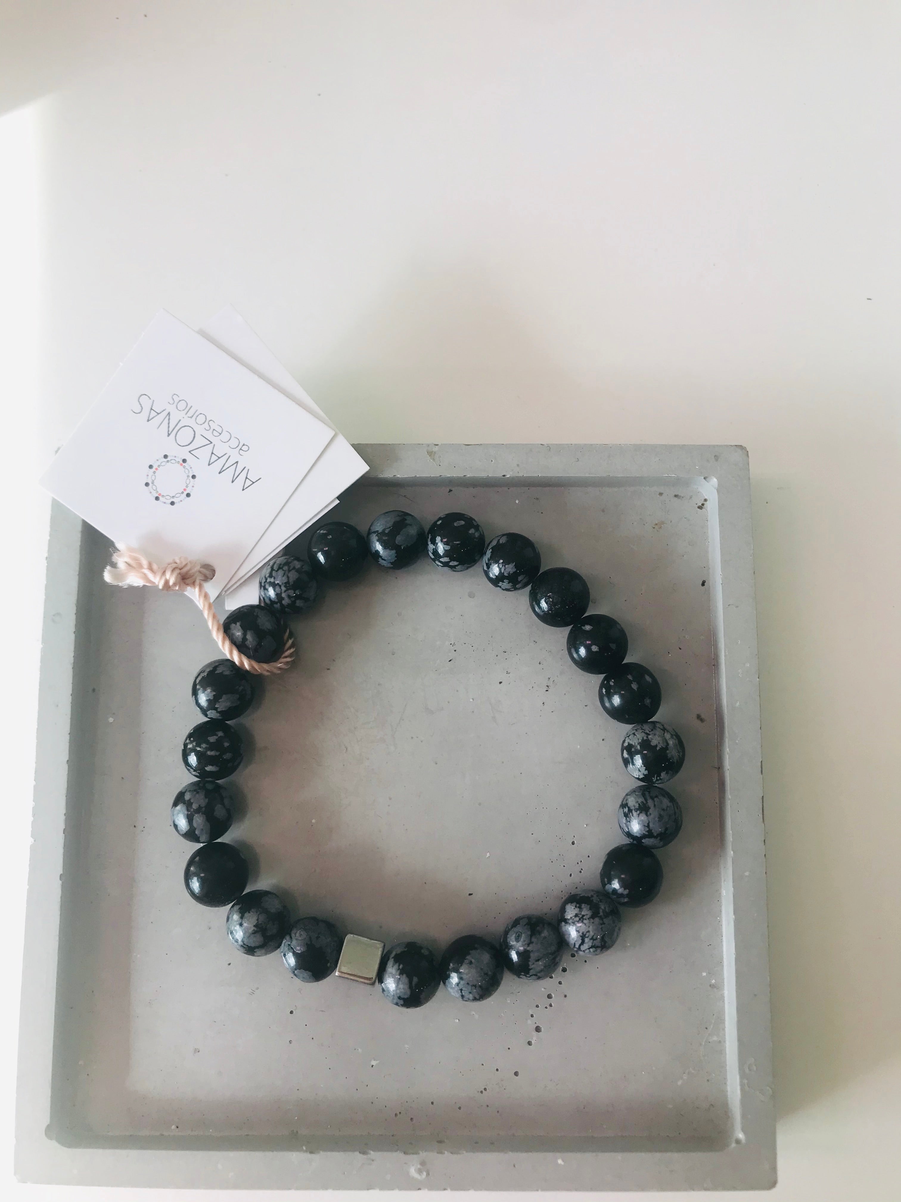 Men Bracelete -Snowflake Obsidian