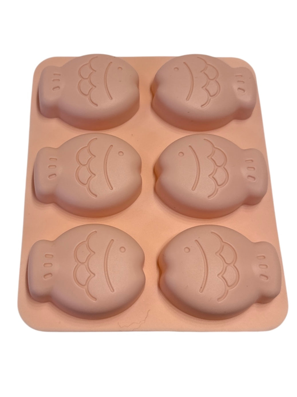 Six cavity fish silicone mold for soap, lotion, and wax melt.